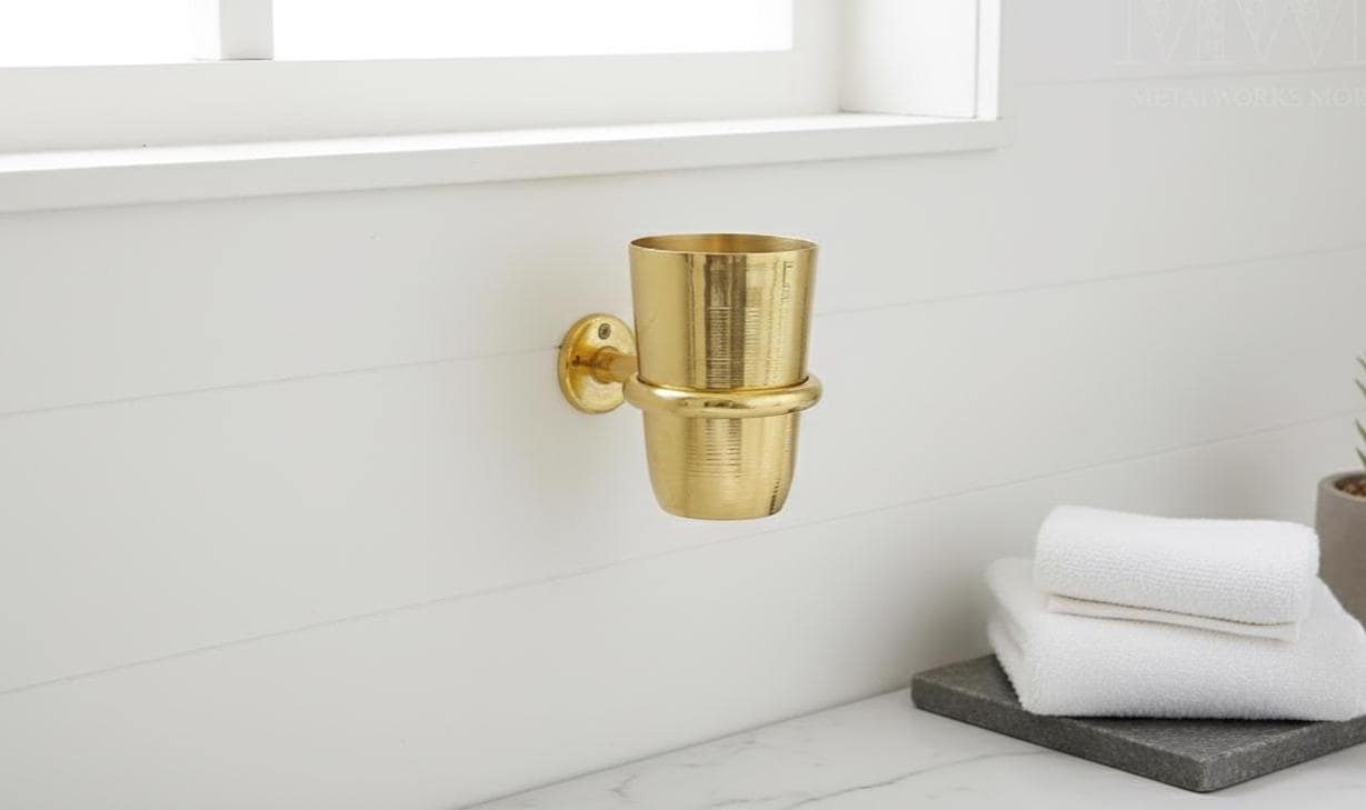 Elevate your bathroom décor with our Handmade Unlacquered Brass Toothbrush Holder Wall Mount. Crafted from premium solid brass, this toothbrush cup combines artisan craftsmanship with timeless elegance.