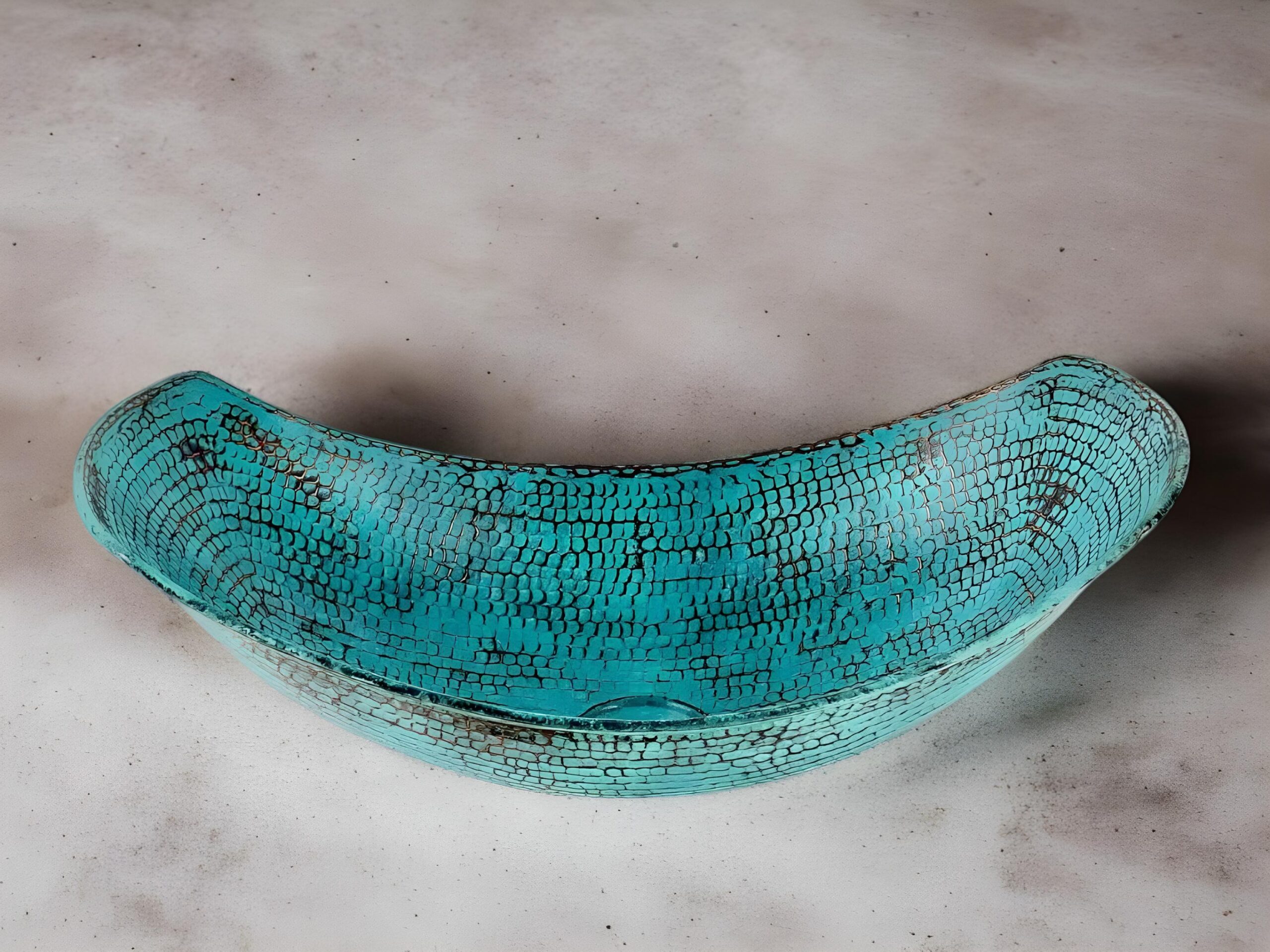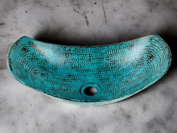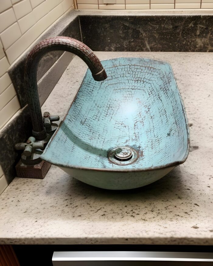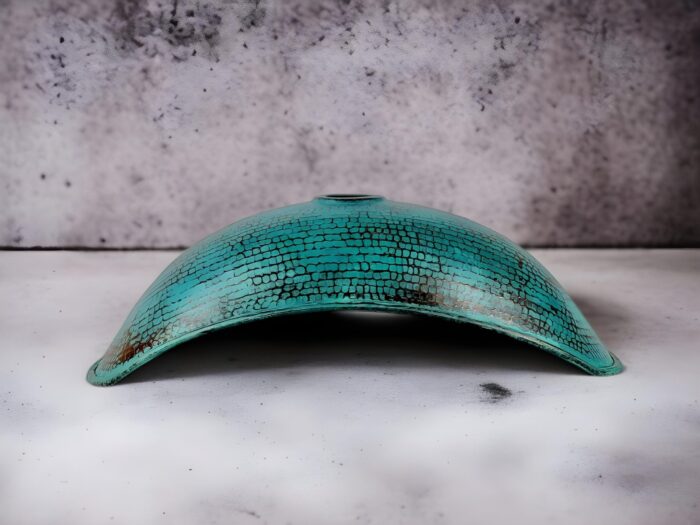 Oxidized Copper Bathroom Sink: Blue Patina Hammered Vessel – 17 Inch