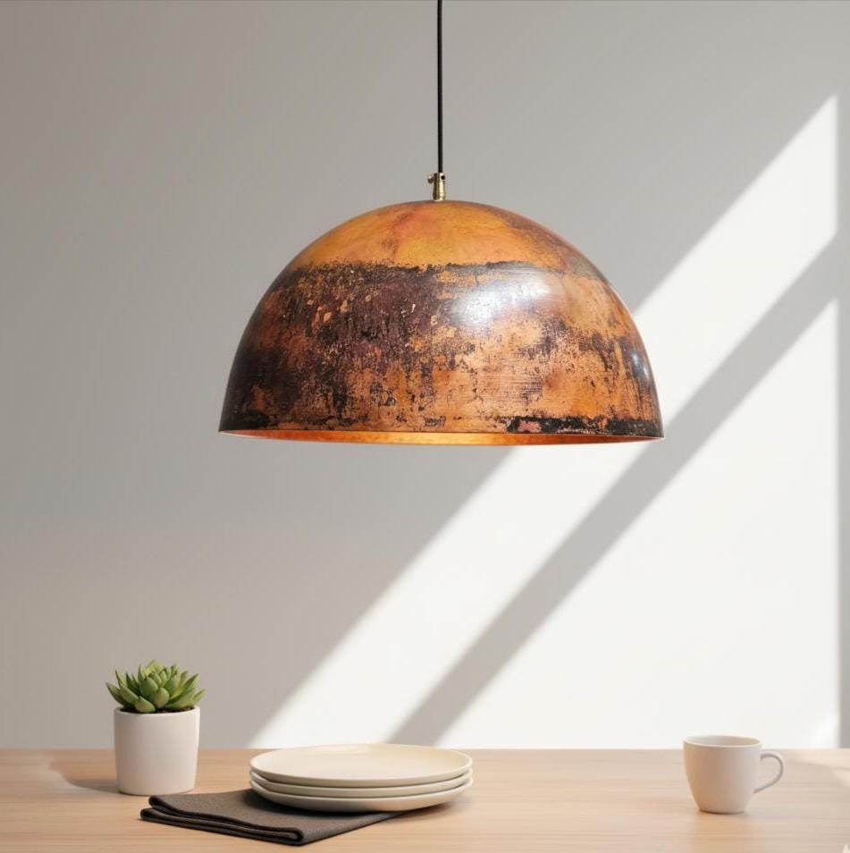 Oxidized Copper Dome Pendant Light: Rustic Kitchen Island Lighting