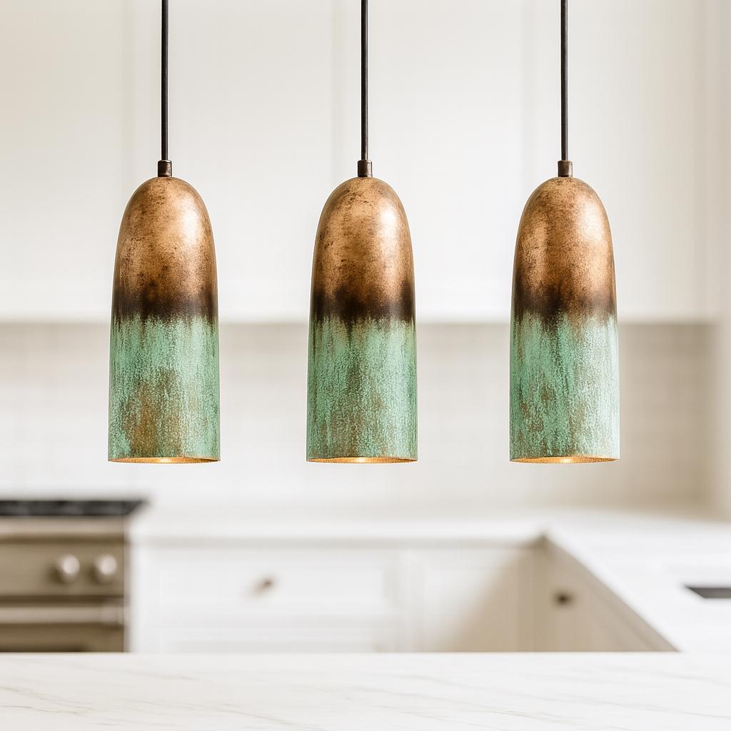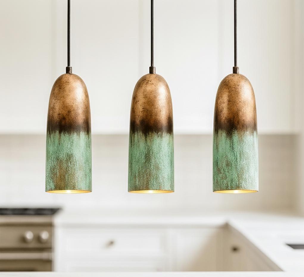 Set of 3 Oxidized Copper Pendant Lights – Green Patina Farmhouse Elegance,Marrakech360