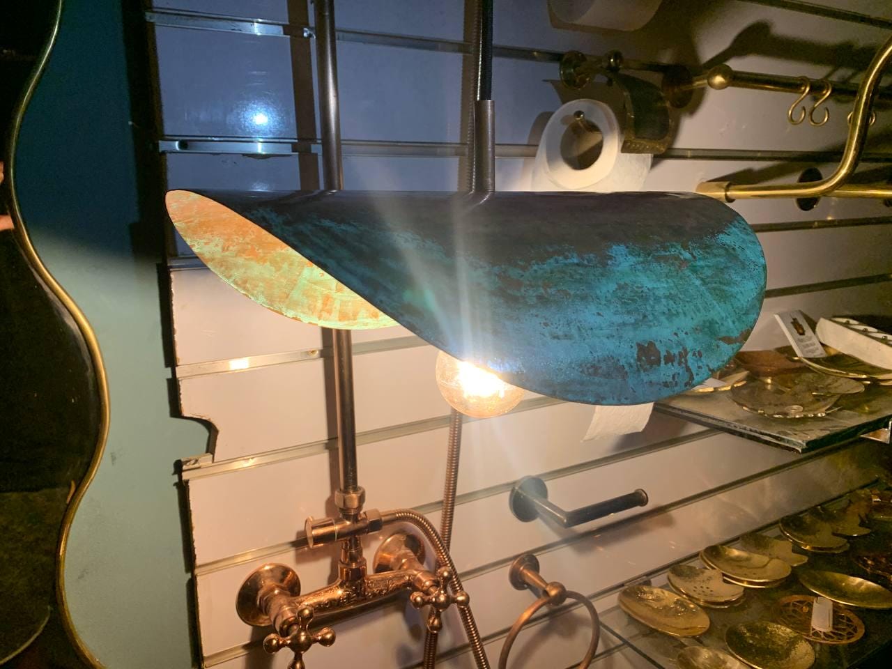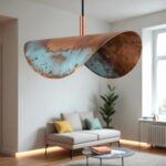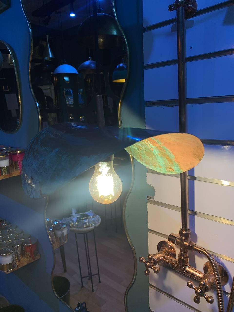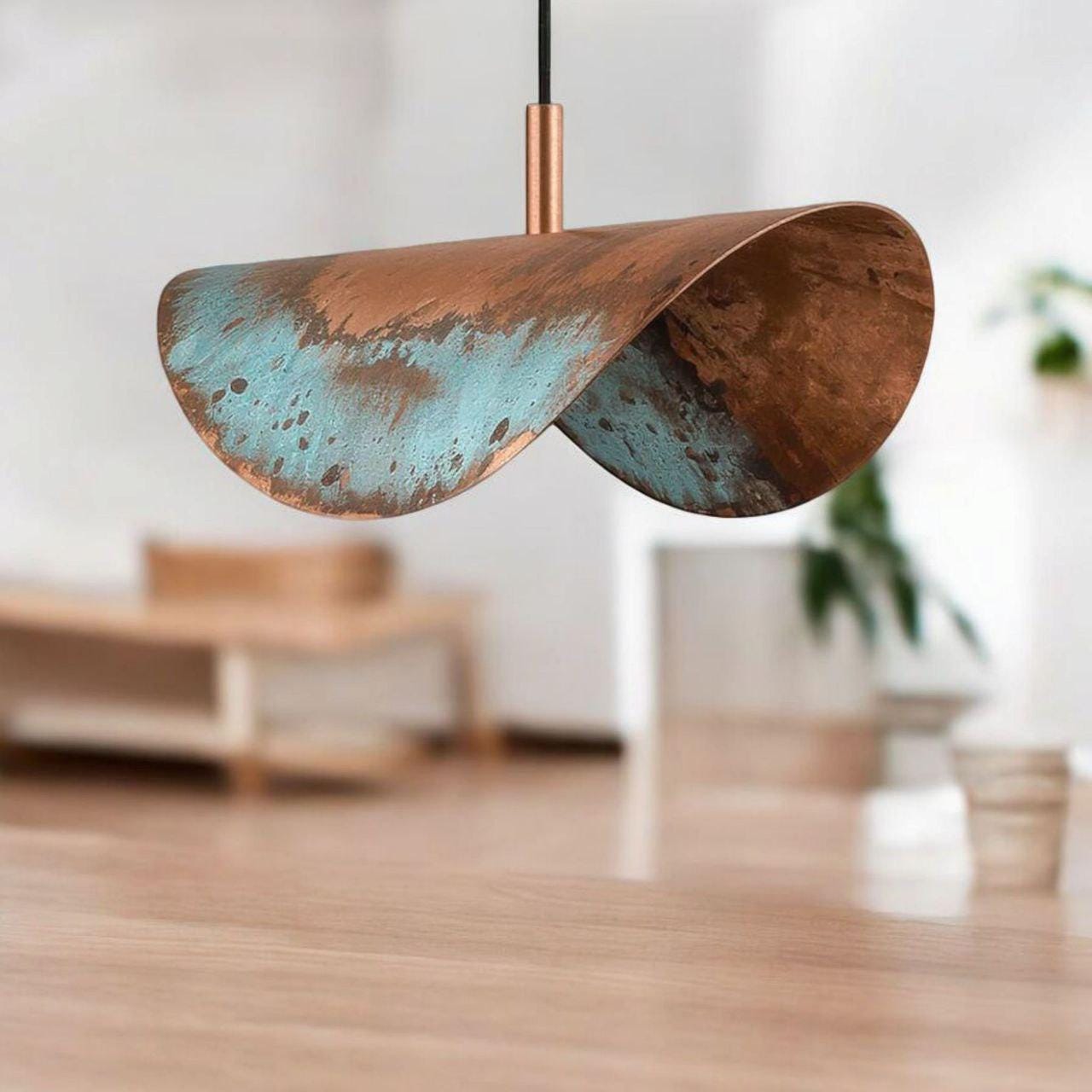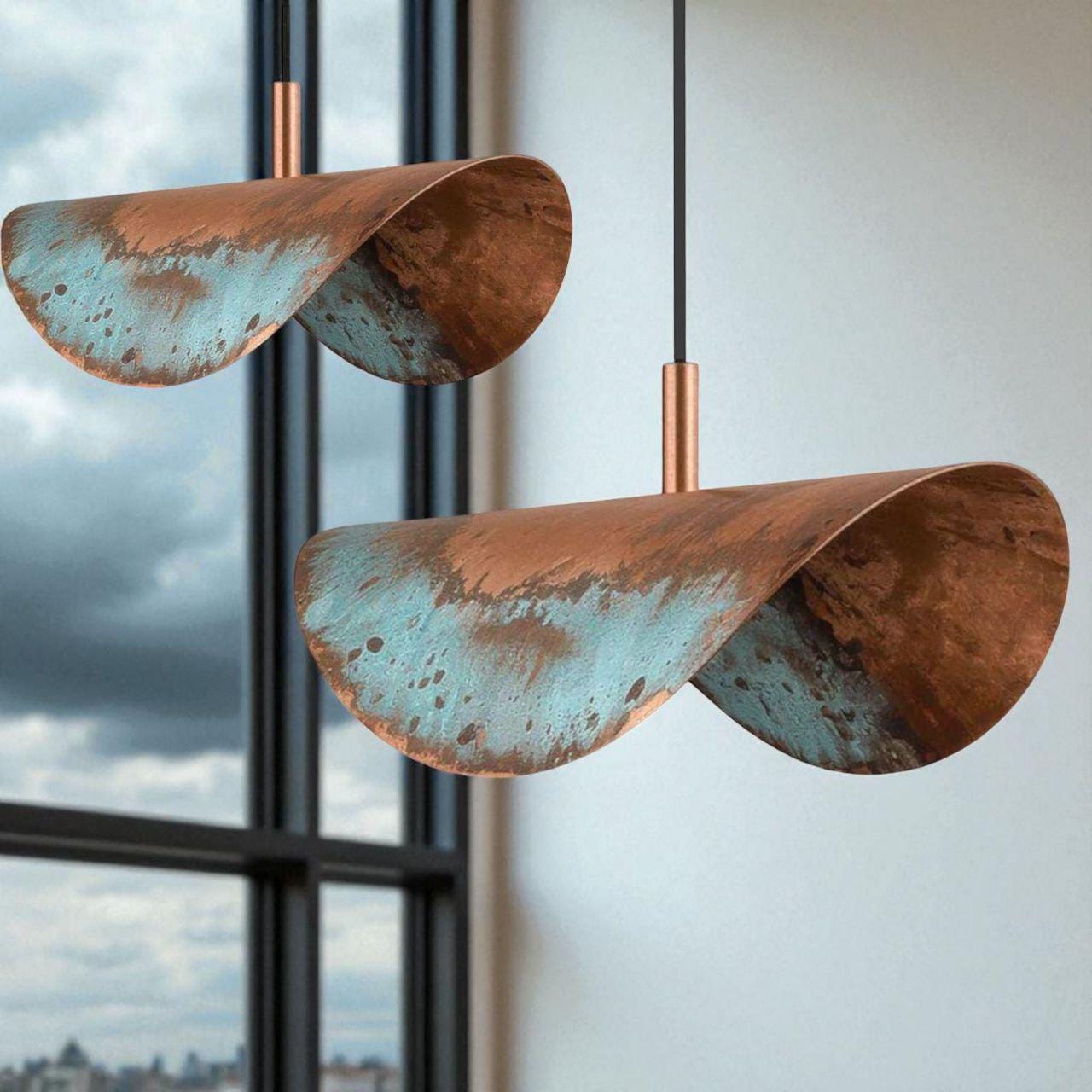 Rustic Copper Patina Pendant Light – Wavy Industrial Hanging Lamp – Handmade Ceiling Light