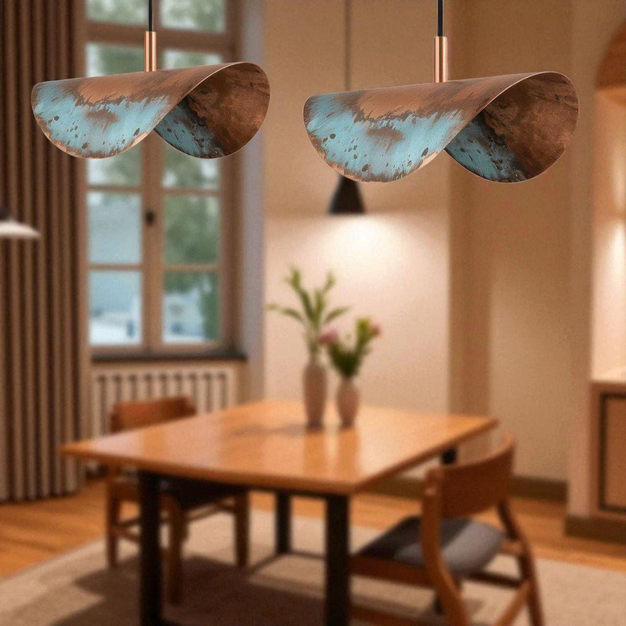 Rustic Copper Patina Pendant Light – Handmade Wavy Vintage Industrial Hanging Lamp
