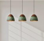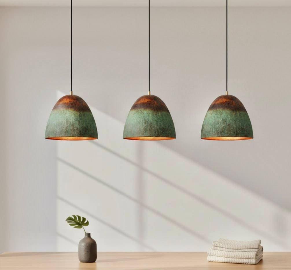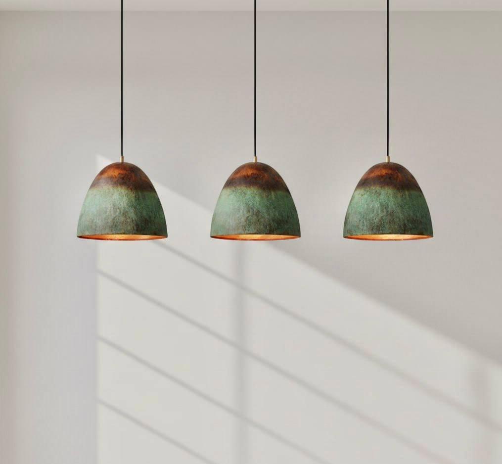 Set of 3 Handmade Oxidized Copper Pendant Lights – Rustic Green Patina Finish