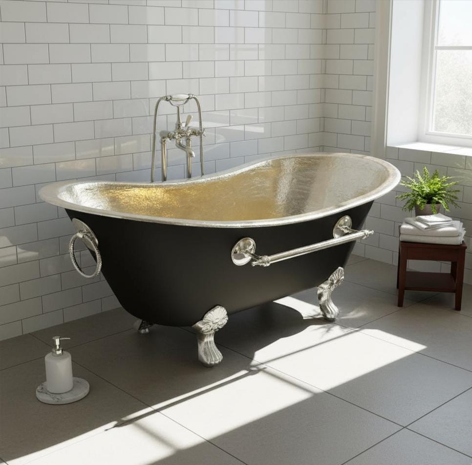 Solid Brass Clawfoot Bathtub – Black & Gold Freestanding Soaking Tub, Handmade Solid Brass Vintage Bath