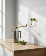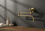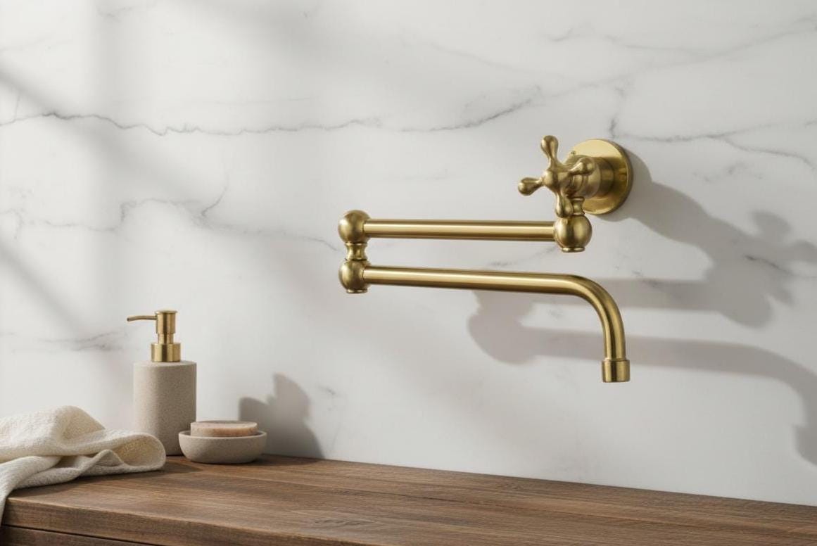 Unlacquered Brass Pot Filler Faucet – Folding Swing Arm Kitchen Sink Tap with Dual Handles