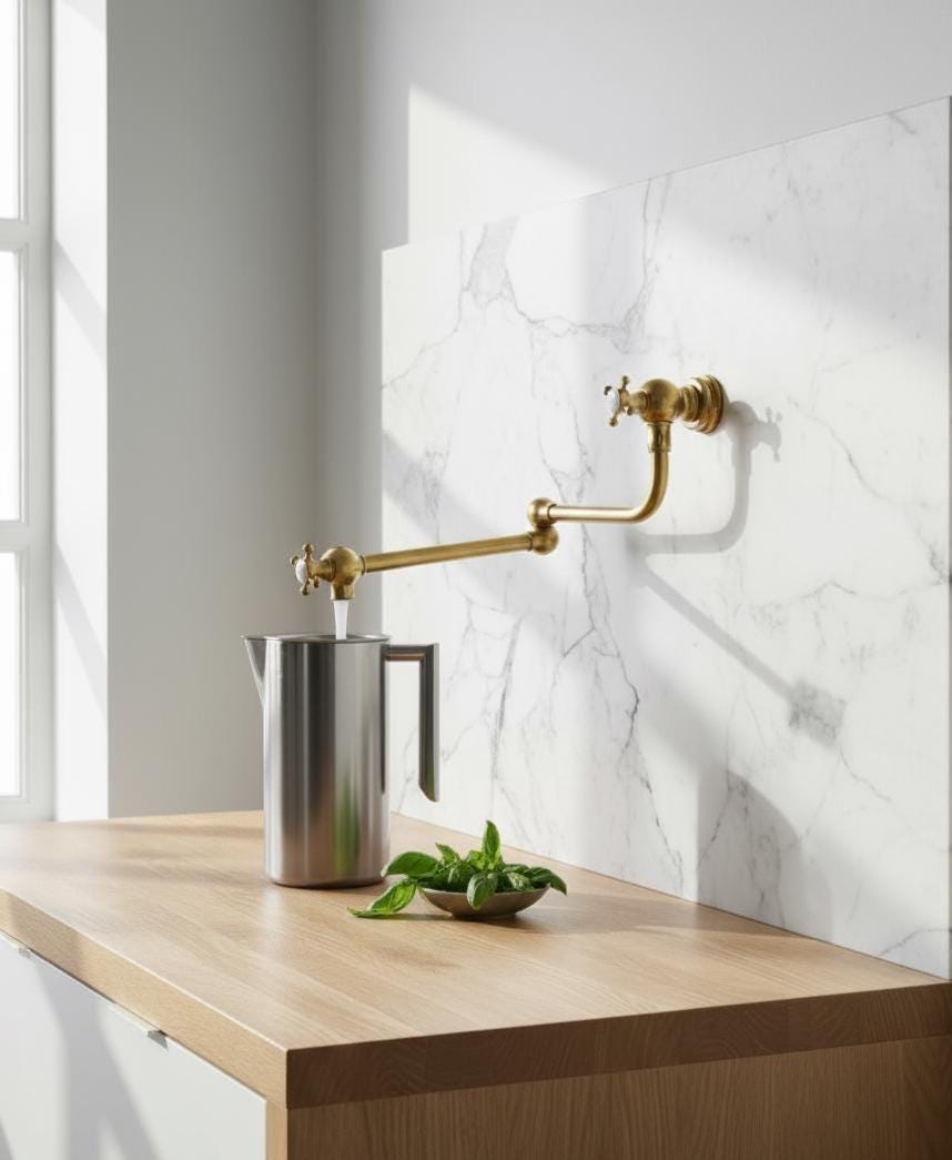 Unlacquered Brass Kitchen Faucet – Handcrafted Moroccan Artisan Design
