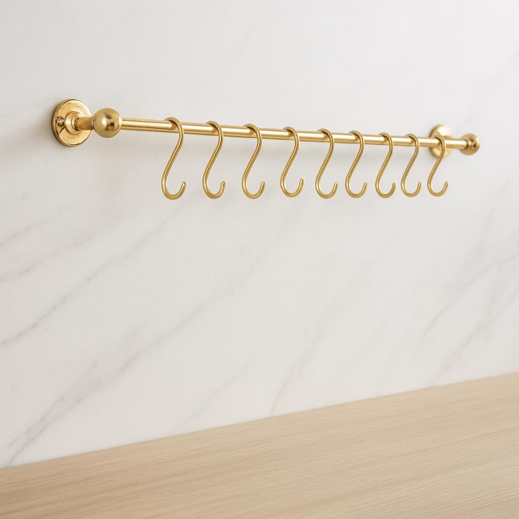 Unlacquered Brass Pot Rail: Solid Brass Kitchen Organizer with S Hooks