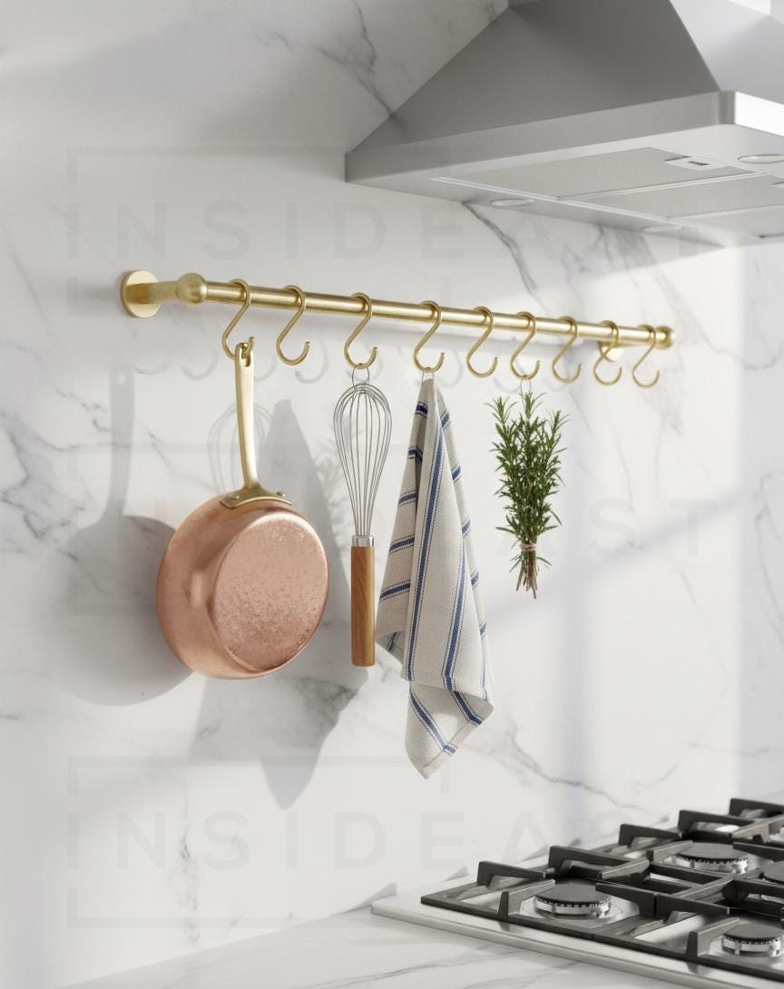 Unlacquered Brass Pot Rail – Solid Brass Wall Mounted Kitchen Organizer