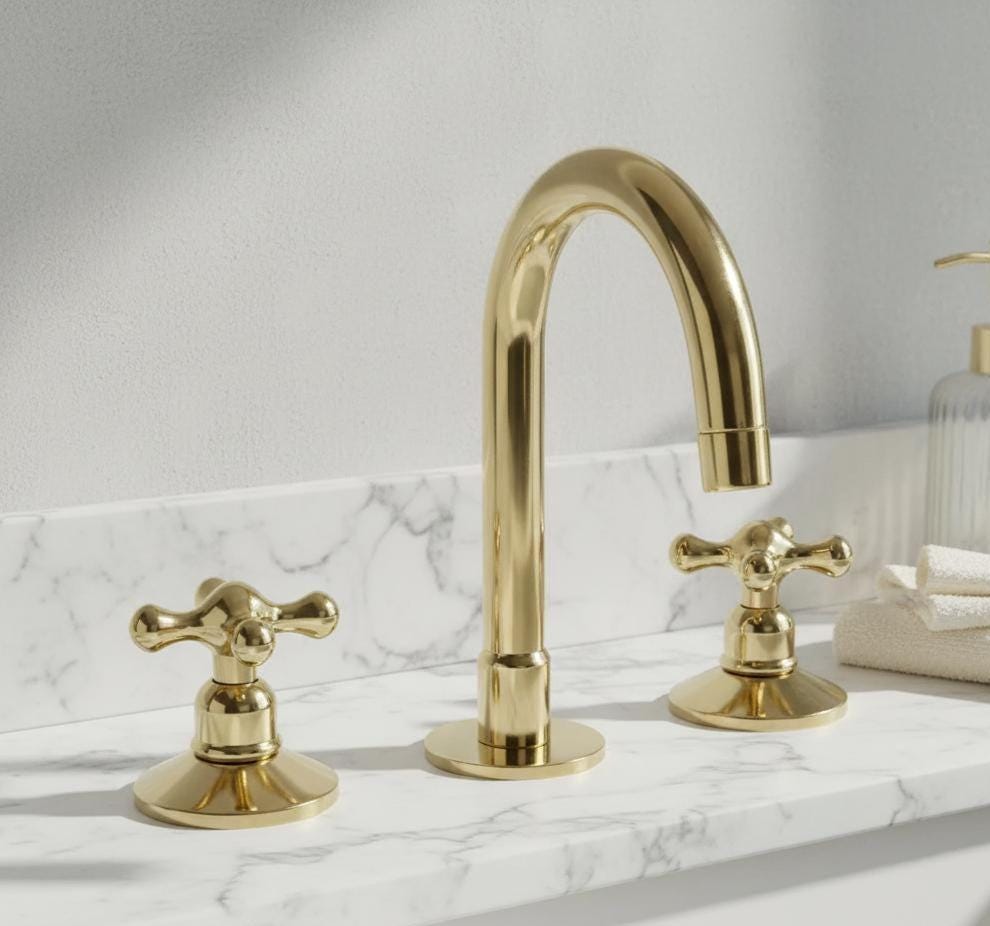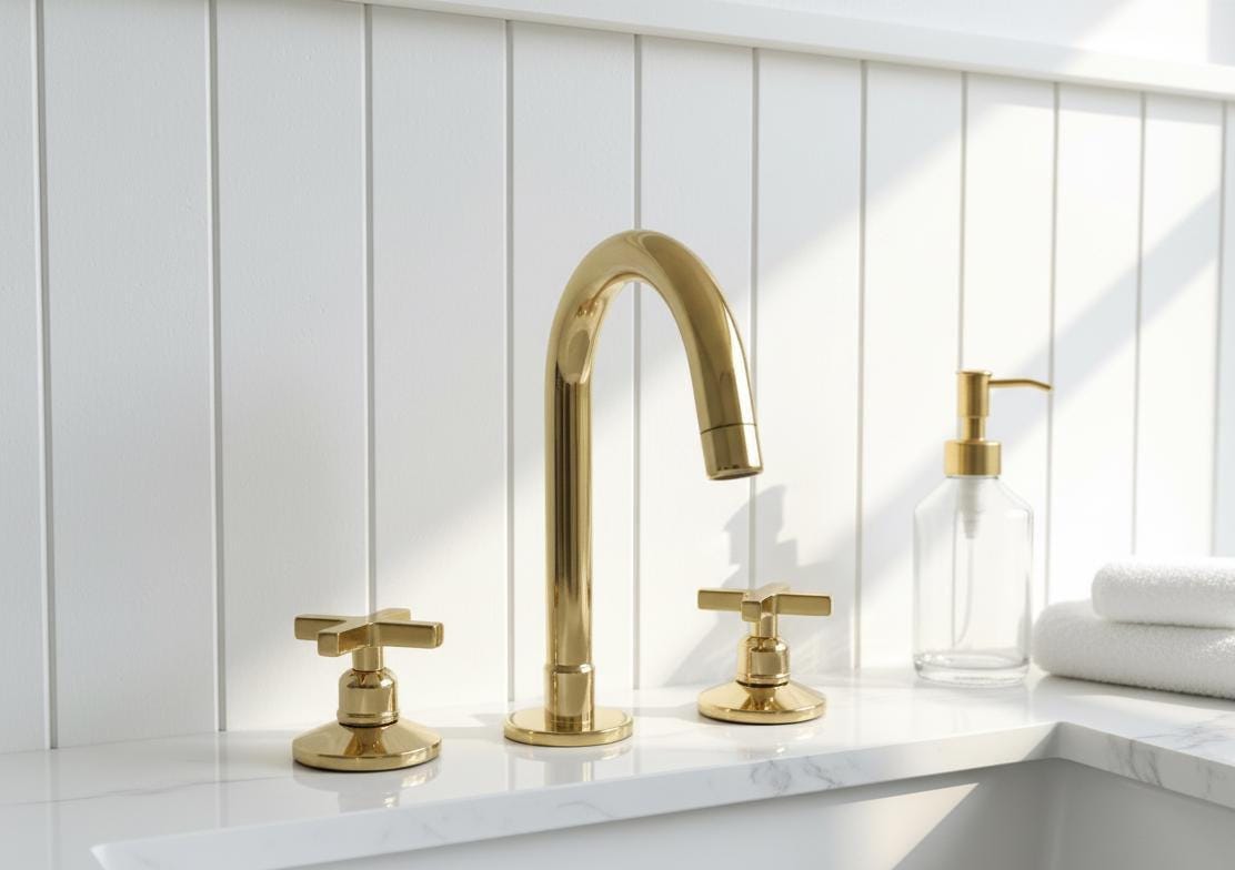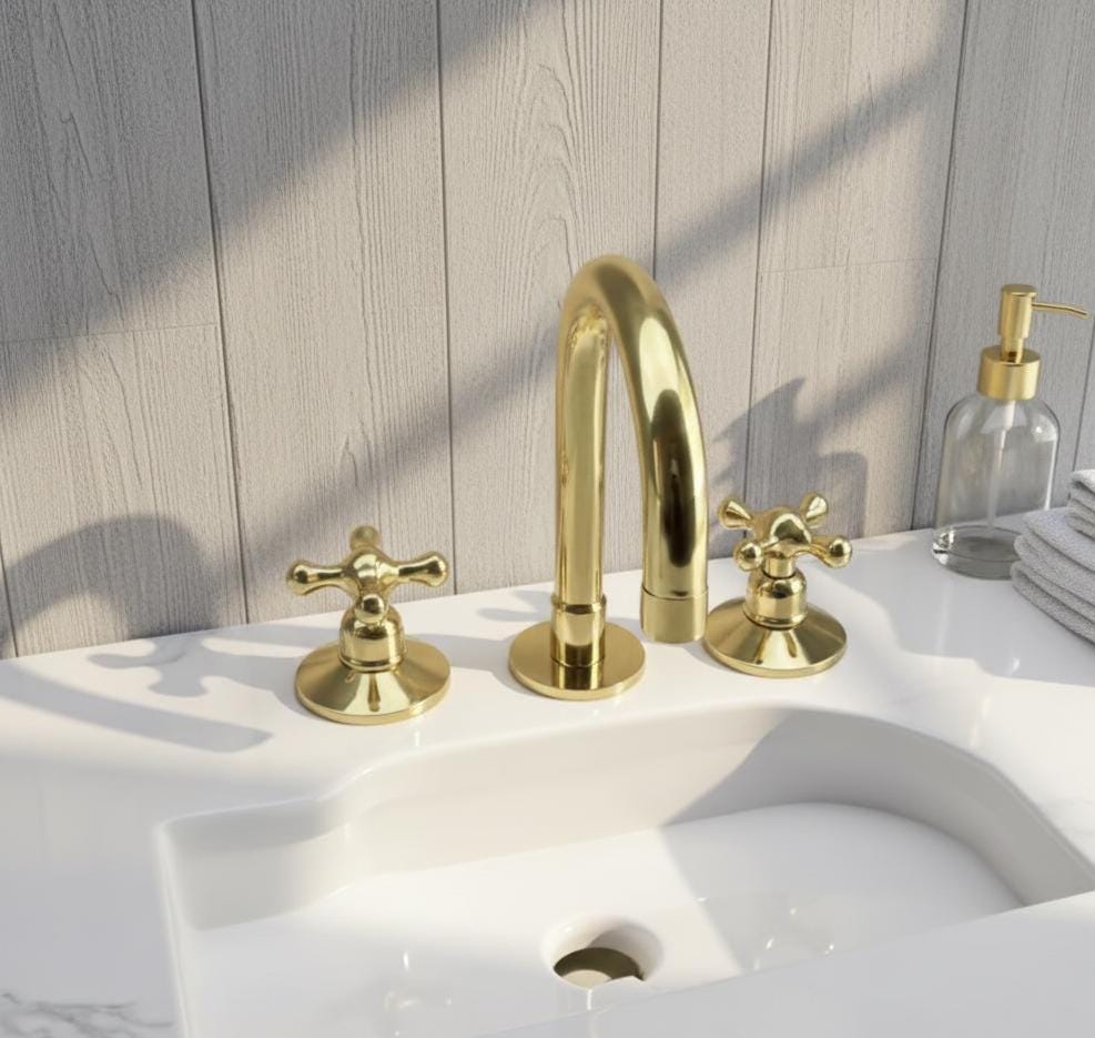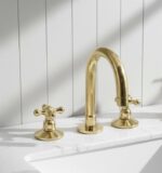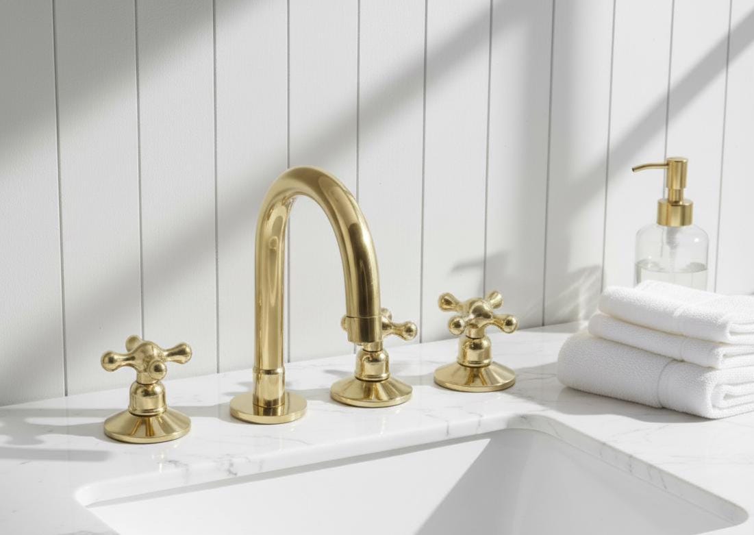 vintage bathroom decor Unlacquered Brass 3-Hole Bathroom Faucet